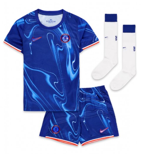 Dres Chelsea FC 24-25 je prvi v zgodovini kluba, ki združuje tradicionalno modro in belo-oranžno barvo. Logotipi domače opreme Chelsea 24-25 so svetlo modri in obrobljeni z “Team Orange”. Oba imata 3D učinek.Izstopa valovit dizajn, ki nekoliko spominja na učinek penastega vala.
