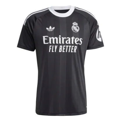 Zaigrajte kot najboljši vratar Real Madrid z uradno moško majico Majica vratarja Real Madrida za moške 2025/26 v črni barvi. Ta moška majica, ki združuje sodoben dizajn in veliko udobja, je popolna tako za na igrišču kot za navijaško oblačilo.